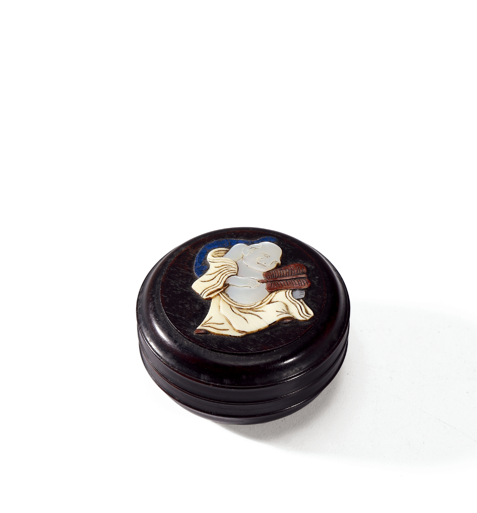 清·紫檀嵌宝弥勒佛盖盒